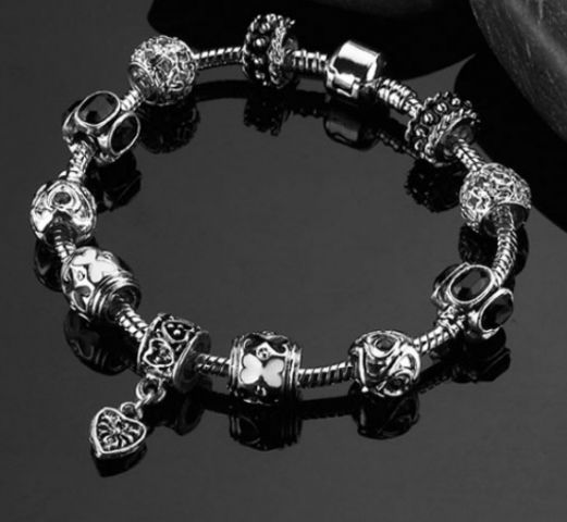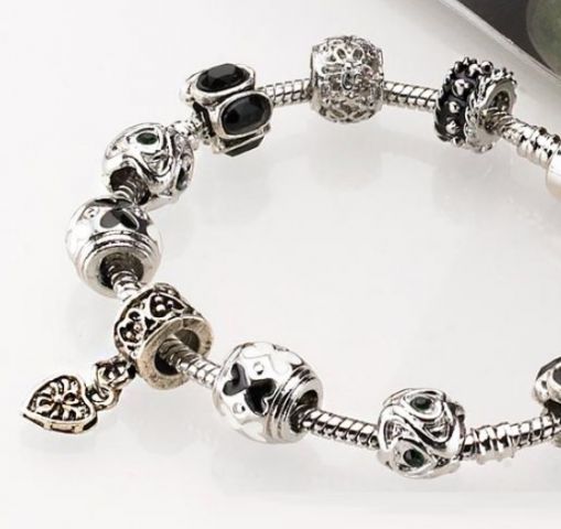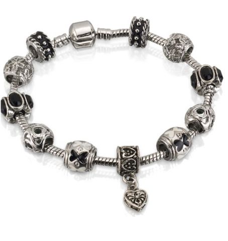 Tajemný černý levný náramek. Nejedná se o značkový náramek, tento šperk je mu pouze podobný, neboť takovýto značkový náramek (s tímto množstvím korálků) by stál cca 10 000 Kč.