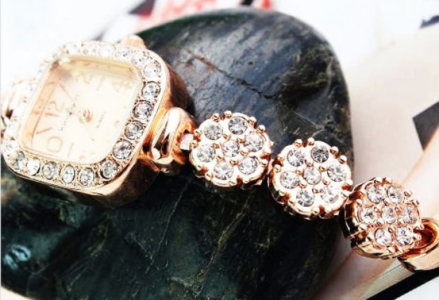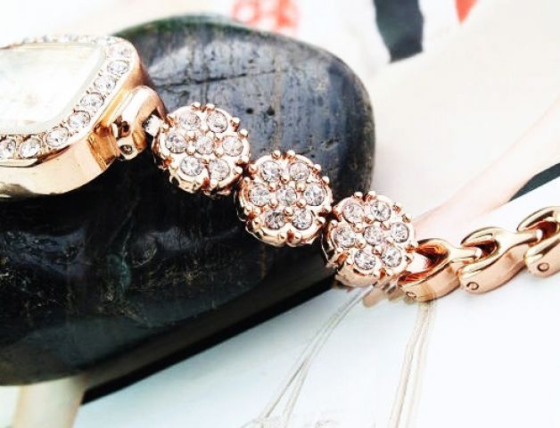 luxusní zlaté dámské hodinky s broušenými krystaly