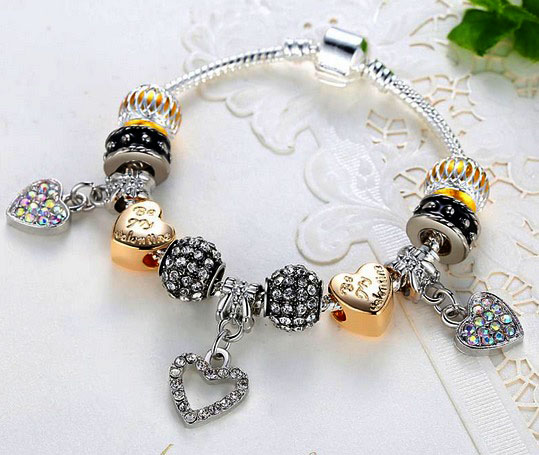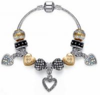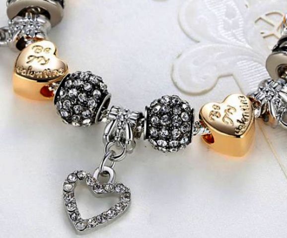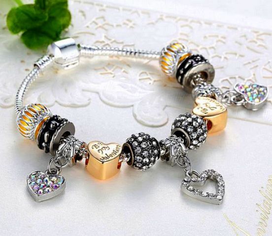 Romantický náramek Srdíčka. Nejedná se o značkový náramek, tento šperk je mu pouze podobný, neboť takovýto značkový náramek (s tímto množstvím korálků) by stál přes 10 000 Kč.
