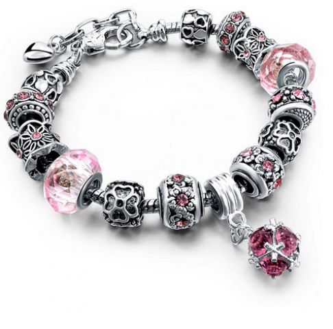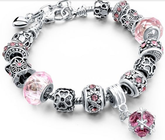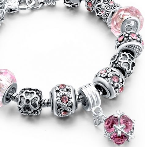 Korálky i řetízek jsou ovšem plně kompatibilní se značkovými šperky - můžete tedy libovolné korálky z tohoto náramku sundat a použít, dle libosti. Nejedná se stříbrný náramek, pouze o náramek stříbrné barvy !